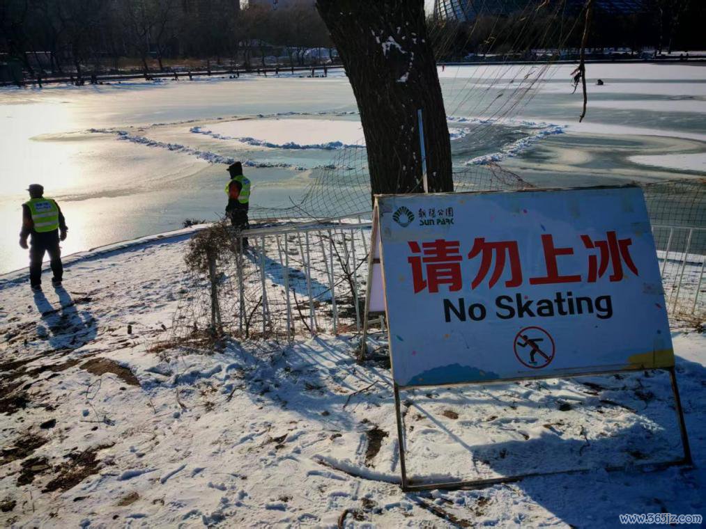 高音喇叭的声息此时满盈贯通:“尊敬的搭客一又友们,接待您来到向阳公园,公园湖面冰层较薄,为了您的安全,请您不要在冰面行走、游玩……”