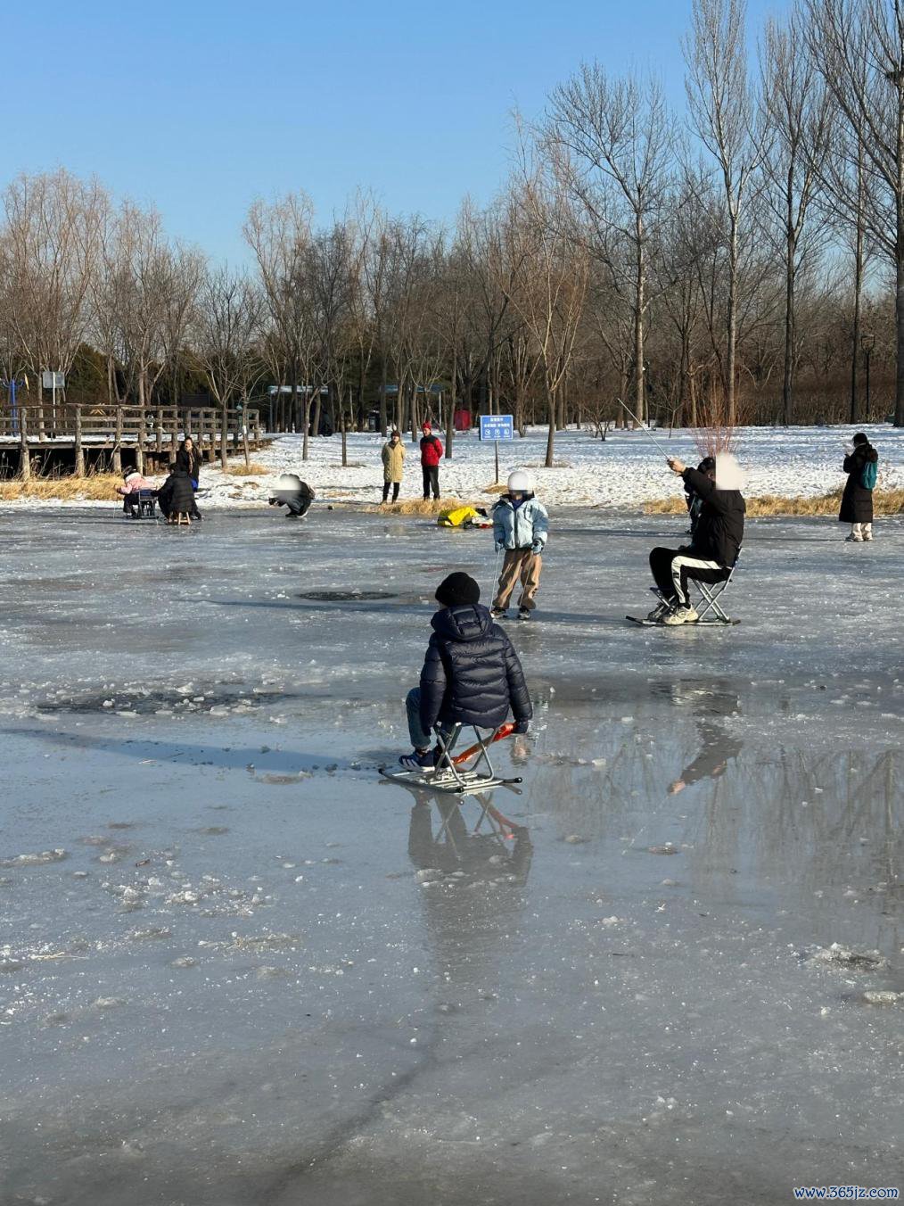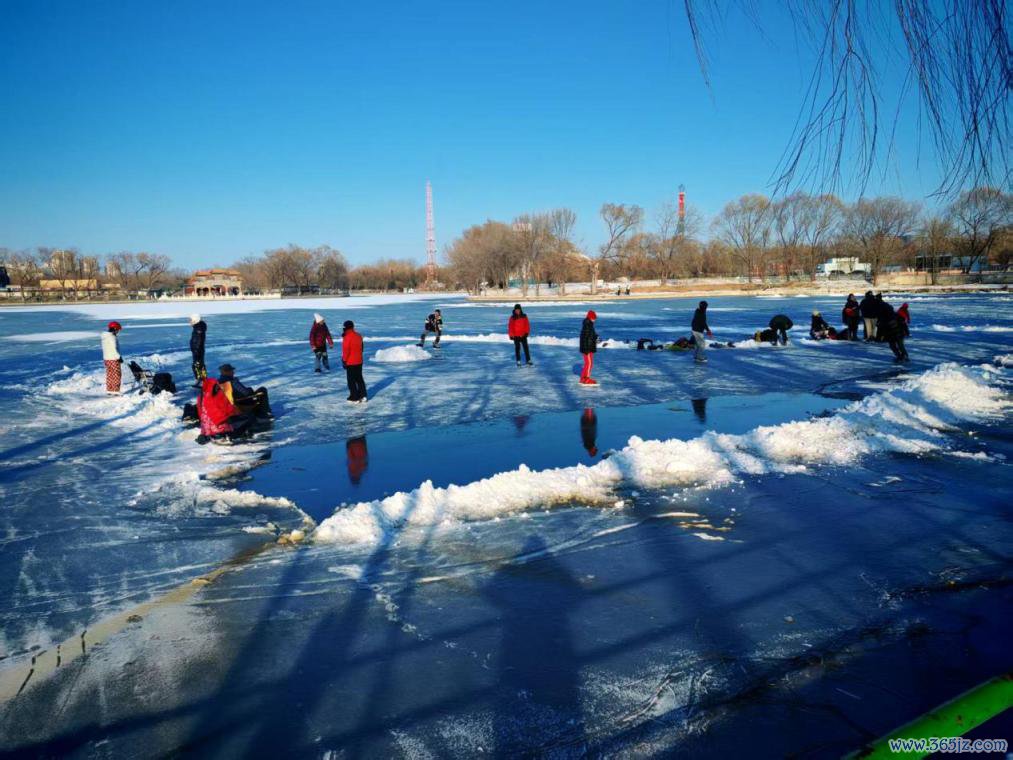 这是上周六下昼2点,向阳公园的这一块湖面,还莫得彻底冻上,站在岸边就能贯通地看到冰面中线路的湖水。溜冰的东说念主群有二三十东说念主,而且东说念主数还在握住上涨。有东说念主在速滑,有东说念主在玩冰球,有东说念主原地旋转,还有东说念主坐在冰车上拍照。